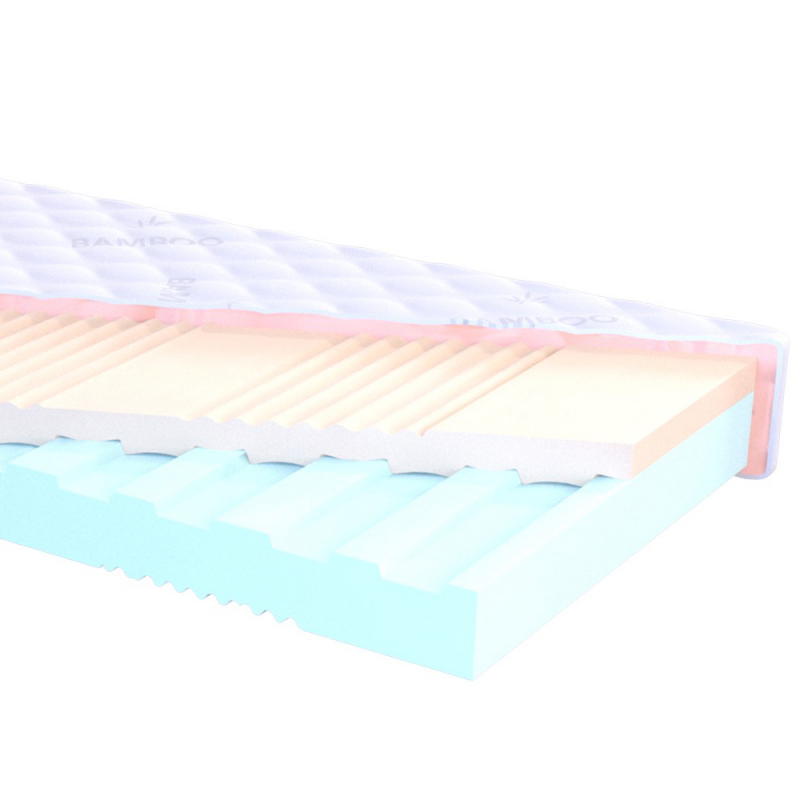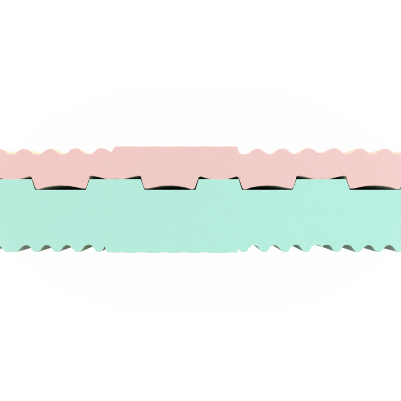 Modrozelená strana je vyrobena z kvalitní polyuretanové pěny typu T2837 a růžová strana je vyrobena z kvalitní polyuretanové pěny typu T2536.
