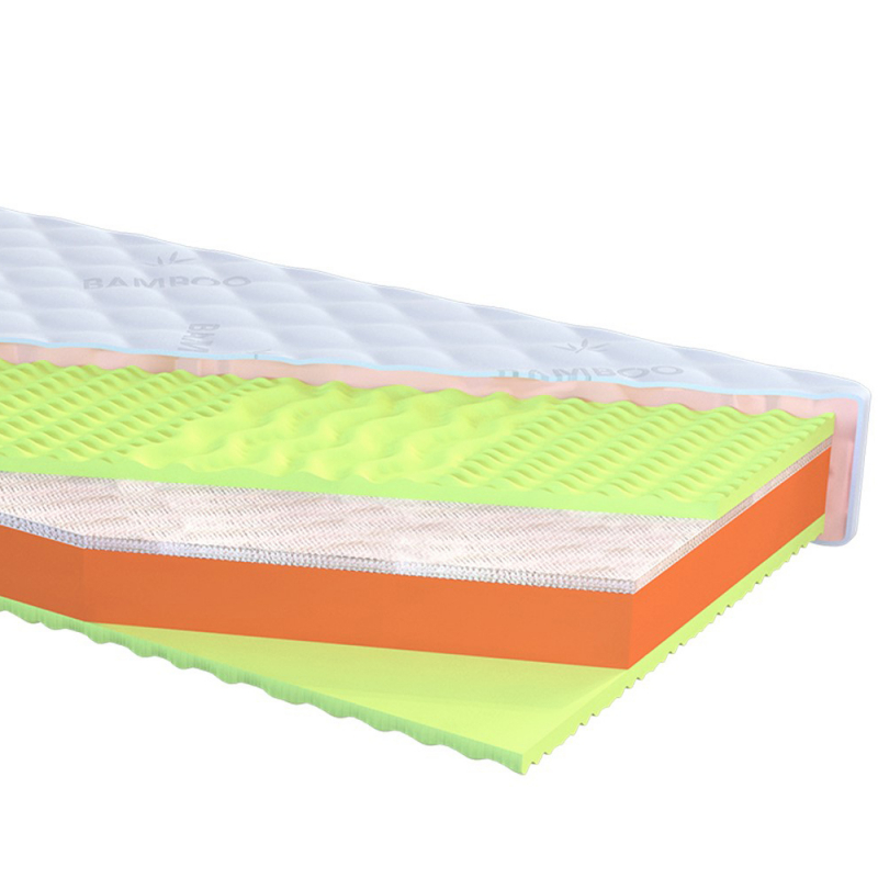 Vrchní vrstvy jsou zhotoveny z kvalitního latexu s masážním profilem. Střední vrstva je vyrobena z tvrdé kvalitní studené pěny typu HR4542 a unikátní 3D mřížky, která zaručuje perfektní odvětrání matrace. Možnost výběru potahu: Standard, Silver, Bambus.