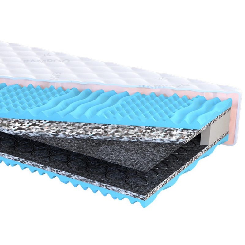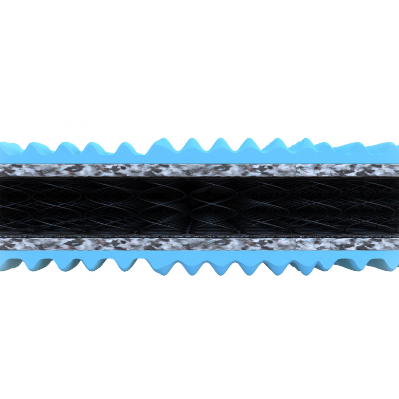 Pružinová kostra Bonnel vyrobená z drátu o průměru 2,4 mm zaručuje dlouhou životnost kostry. Vrchní vrstvy jsou vyrobeny z kvalitní pojené polyuretanové pěny typu R80 a z kvalitní studené pěny typu HR4037 s masážním profilem rozděleným do sedmi zón.