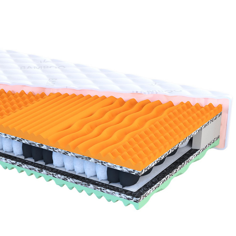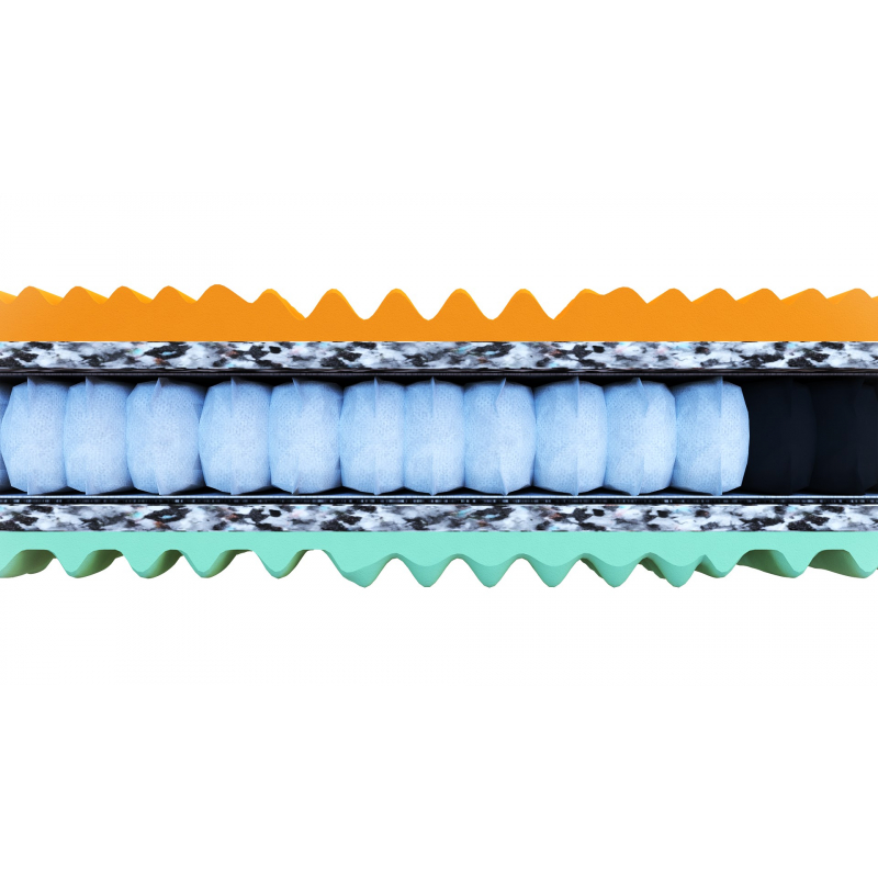 Oboustranná pětizónová taštičková matrace s masážním profilem z paměťové pěny, vysoce prodyšná.