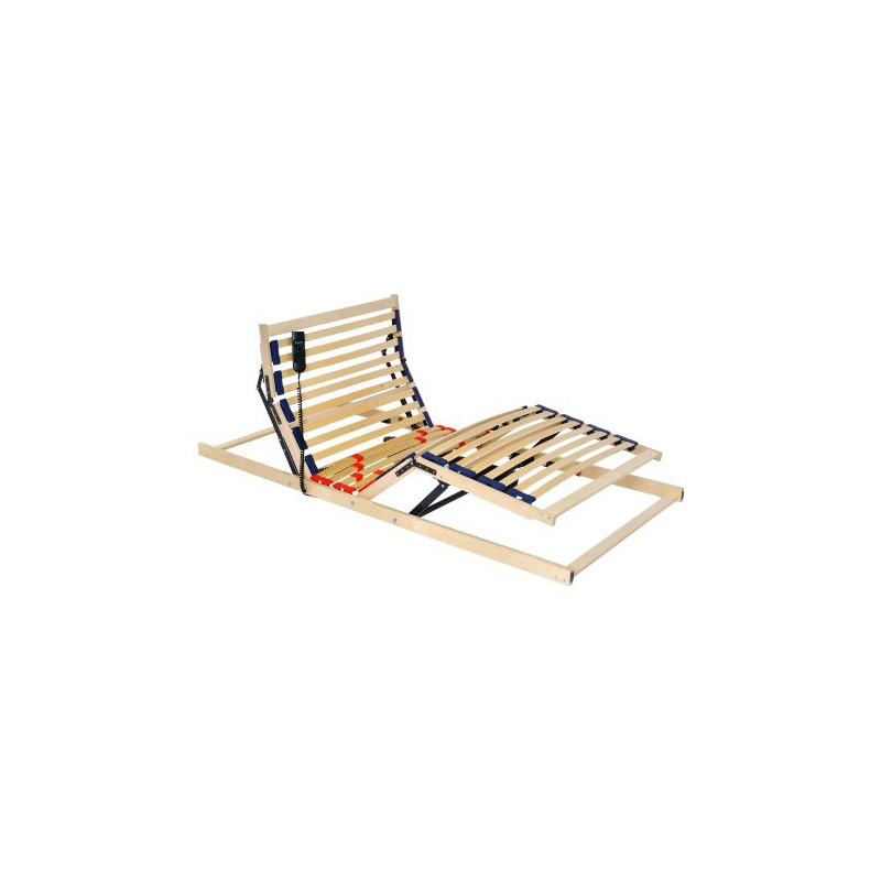 Kvalitní lamelový rošt polohovatelný tichým elektromotorem s dálkovým ovládáním. Rošt má 28 lamel o šíři 38 mm, které jsou uloženy ve výkyvných gumových pouzdrech. Tento lamelový rošt má 5 dvojitých lamel v oblasti zad a pánve, u kterých lze nastavit tuhost. Vhodným nastavením tuhosti roštu a správným výběrem matrace se předchází bolestem zad. Zatížení roštu doporučujeme do 130 kg.